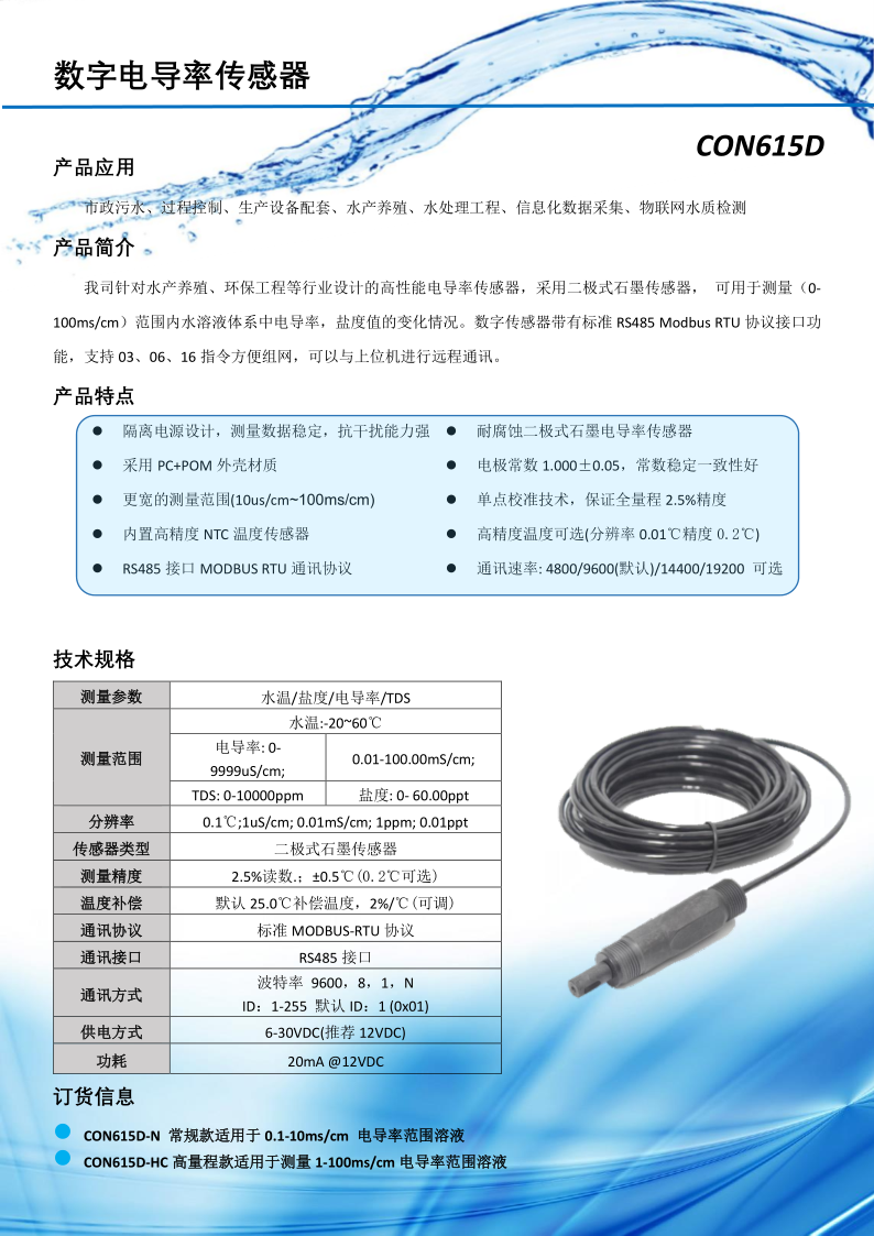 數(shù)字式電導(dǎo)率傳感器(2極) CON615D